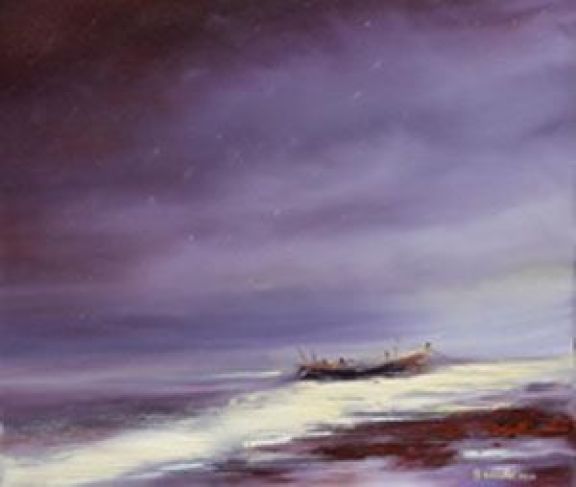 Las pinturas de Bernabé inmortalizan aquellos momentos que duran sólo pocos segundos, como la puesta del sol entre las olas del mar o un atardecer en las sierras.