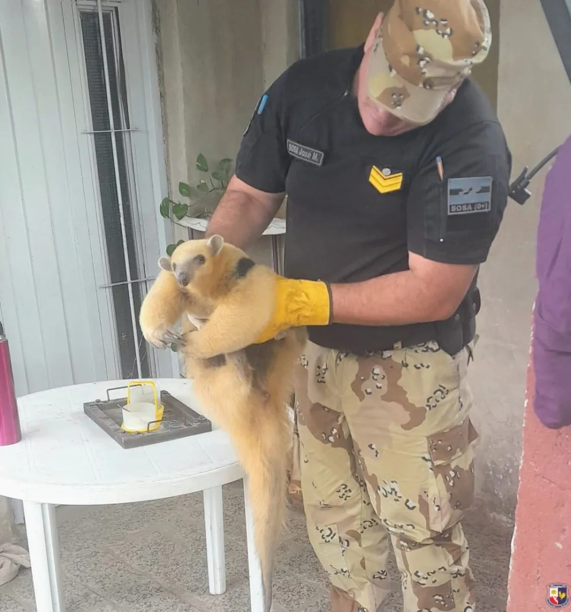Efectivos de la Policía Ecológica y Ambiental de Concarán realizaron este martes un operativo en Tilisarao para resguardar a un ejemplar de oso melero que apareció en el barrio Las Quintas.