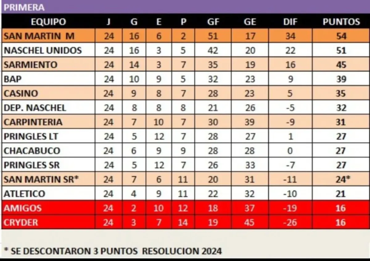Su perseguidor directo, Naschel Unidos, también obtuvo un triunfo: le ganó 1 a 0 a Juventud de Carpintería en su visita, alcanzando los 51 puntos y manteniendo la diferencia de tres unidades. Con ambos equipos firmes en la recta final, la definición por el cupo directo al Torneo Regional Federal Amateur 2026 quedará abierta para las últimas dos fechas.