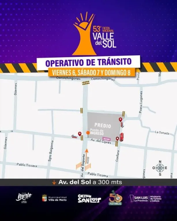 Con motivo de la 53° Fiesta Nacional Valle del Sol, este fin de semana se implementará un operativo especial de tránsito que afectará la circulación vehicular en la zona del Balneario Municipal de Villa de Merlo.