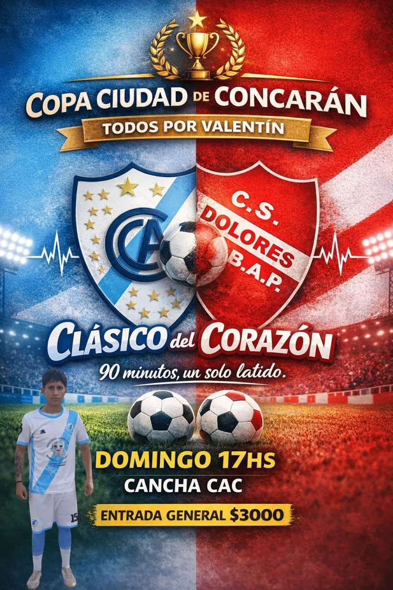La pelota volverá a rodar en Concarán, pero esta vez el resultado será anecdótico. El próximo domingo 1 de marzo, a las 17 horas, la cancha del Club Atlético Concarán será escenario de un superclásico con un objetivo que trasciende cualquier tabla de posiciones, acompañar a Valentín González en el inicio de su tratamiento contra el cáncer.