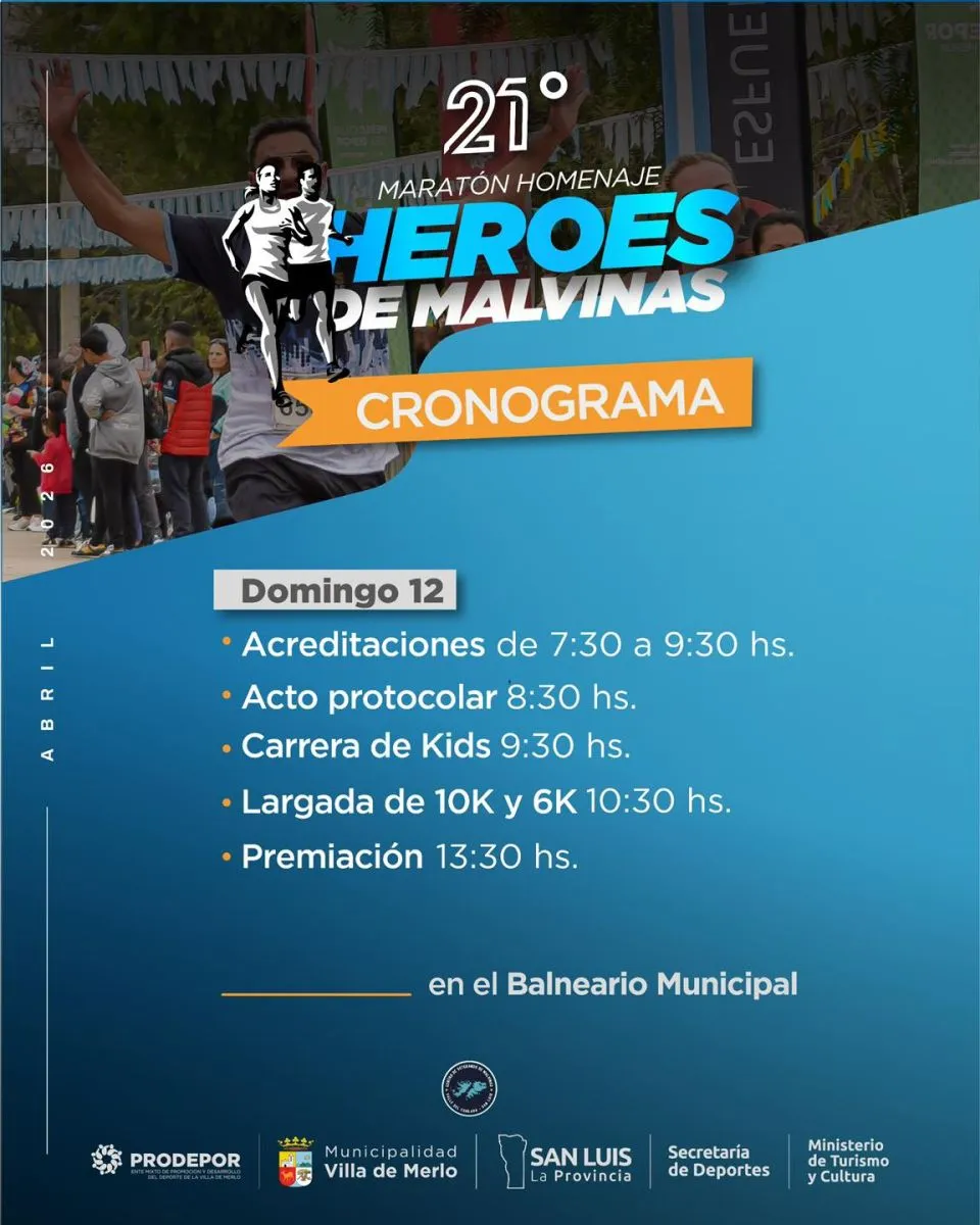 Este domingo se corre en Villa de Merlo la Maratón Héroes de Malvinas